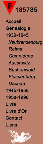Matricule 185785 Accueil Généalogie 1939-1945 1945-1958 Matricule 185785 Livre d'Or Contact Liens N J A R T Stalag II A Compiègne Auschwitz Buchenwald Flossenbûrg Dachau Reims 1958-1996